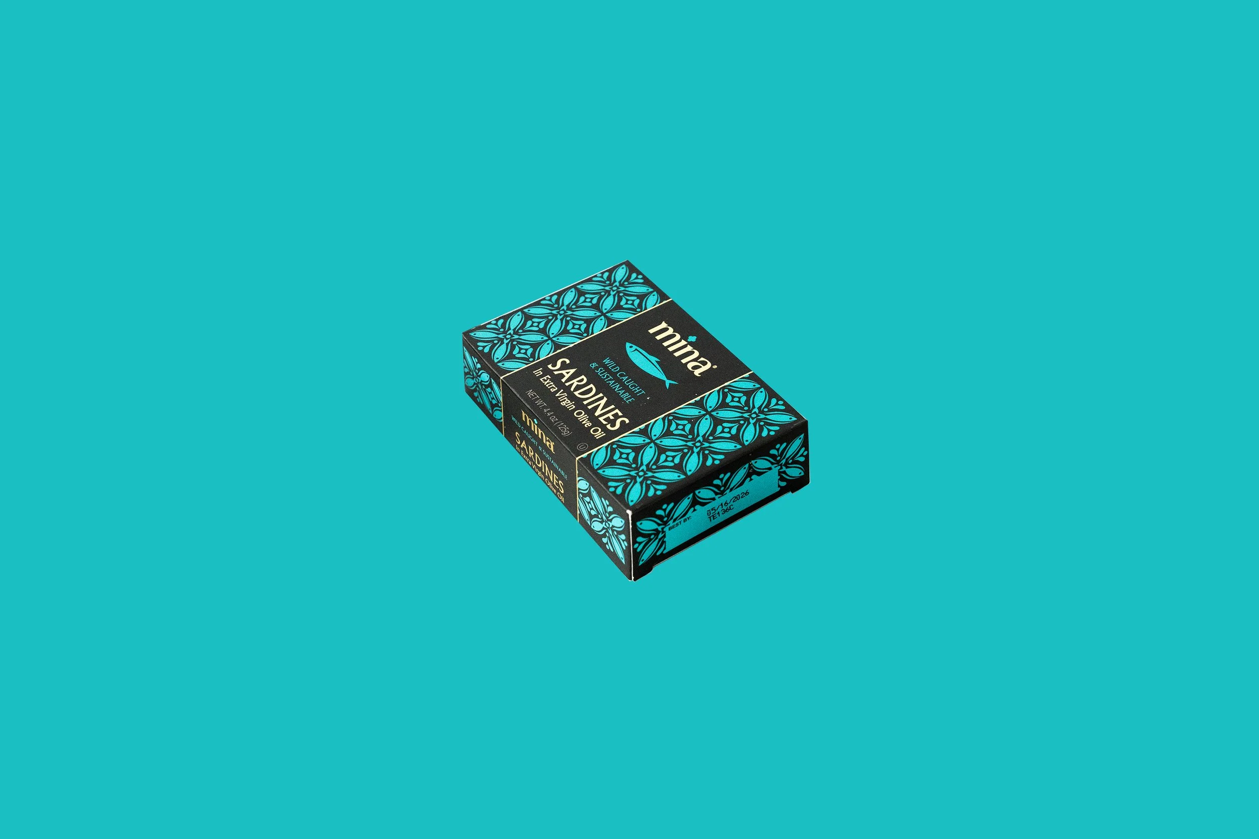 “With Mina sardines, the same elements pull through. They feature a mosaic tile made of key ingredients – the extra virgin olive oil, the fish – with aqua and blue colors reflecting the color of the ocean,” continues Lisa, a branding expert who has worked with food and beverage companies globally for over 20 years.